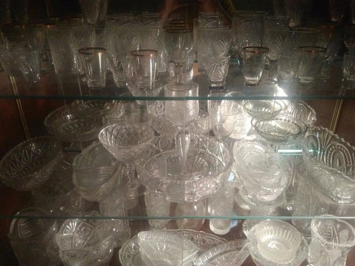 «У мамы в серванте жил хрусталь. Салатницы, фруктовницы, селедочницы. Всё громоздкое, непрактичное. И еще фарфор. Красивый, с переливчатым рисунком цветов и бабочек. Набор из 12 тарелок, чайных пар и блюд под горячее.