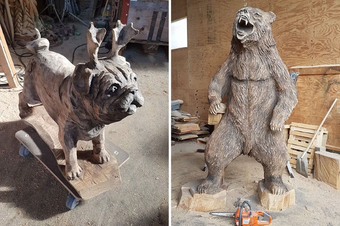 У эстонца Игоря Лоскутова такой страстью стала резьба по дереву. Причем для этого мужчина использует бензопилу. Работы Игоря поражают своей реалистичностью.