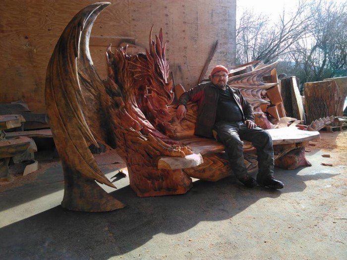 Мужчина родился в Таллине, но вот уже многие годы живет и работает в Германии. Он входит в команду резчиков по дереву, которые работают с крупными формами. К примеру, в Сети уже долгое время обсуждают скамью в виде дракона, которую сделал Игорь.