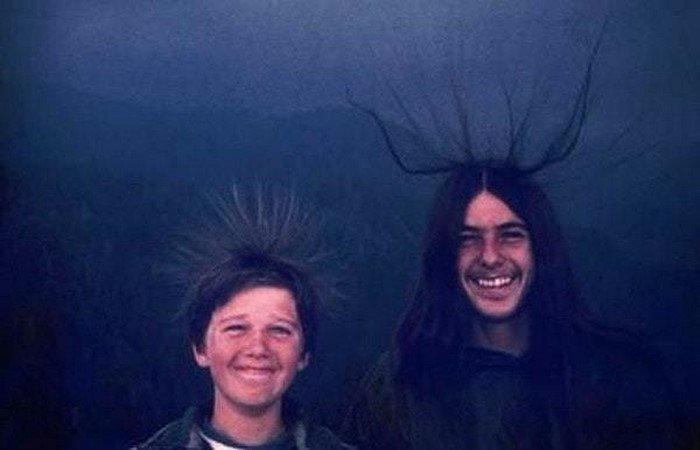 Мальчишки позируют для младшей сестры на вершине скалы. Через несколько секунд после того, как был сделан снимок, в детей ударила молния. Старший брат не пострадал, младший же получил ожоги рук и спины третьей степени, но выжил.