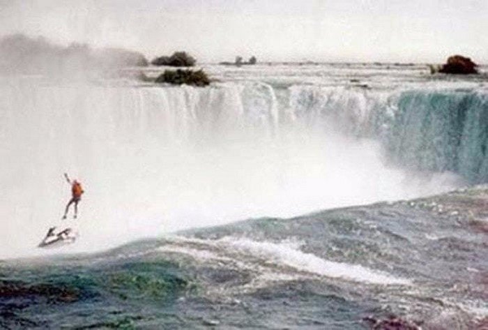 39-летний Роберт Оверакер придумал дерзкий план. Профессиональный каскадер должен был проехать по краю Ниагарского водопада на водном мотоцикле, а затем катапультироваться и спокойно спуститься вниз на особом парашюте.