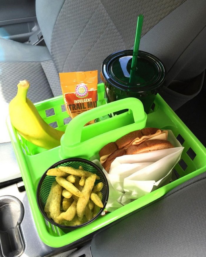 Если ты часто ешь прямо в машине, не лишним будет поставить в салон какую-нибудь корзину. Так не придется искать упавшую картошку фри во всех мыслимых закутках, и крошек будет гораздо меньше.