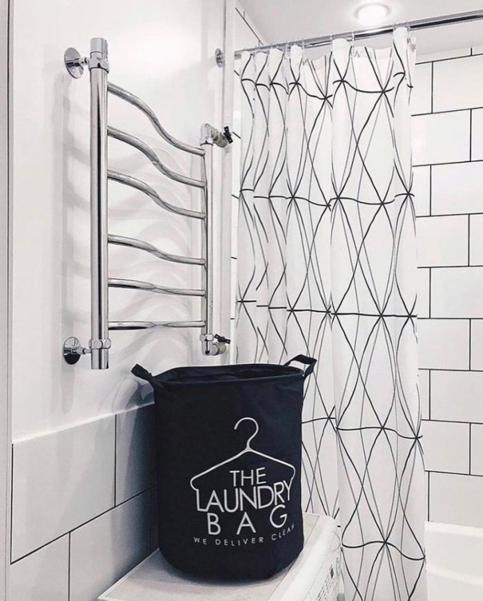 А чтобы совладать с повышенной влажностью, в ванной сделали современную вытяжку. Также в комнате установили новый водяной полотенцесушитель.