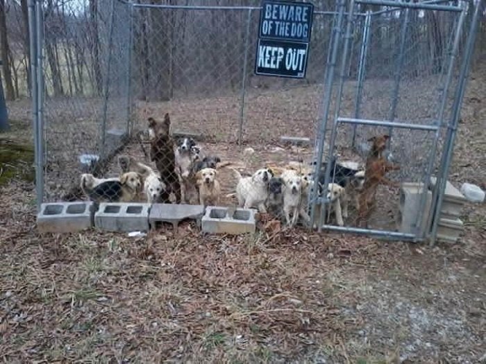 Этот заброшенный дом находится на территории фермы в Теннесси. Владелец давно умер, а его жена сошла с ума и загремела в психушку. Это чудо, что собаки до сих пор живы.