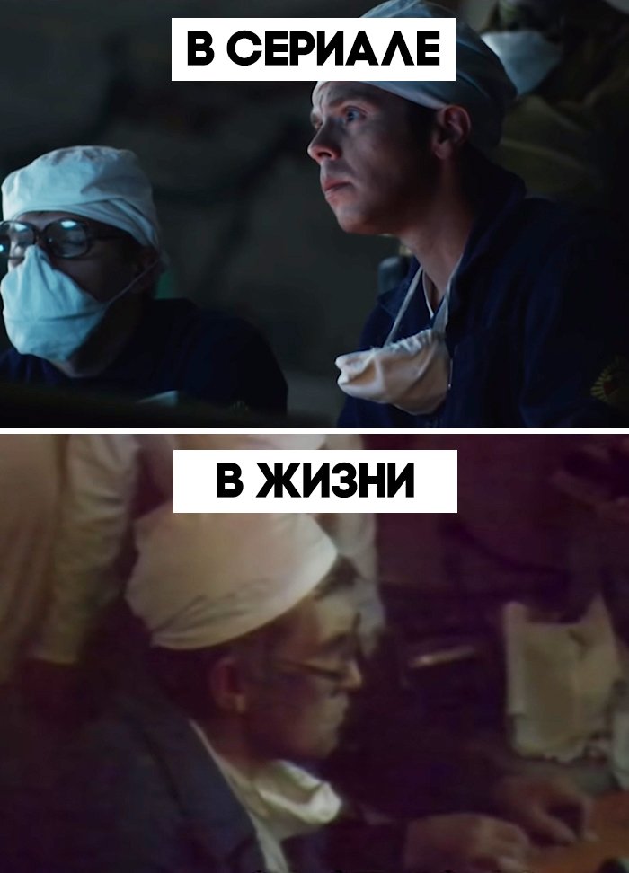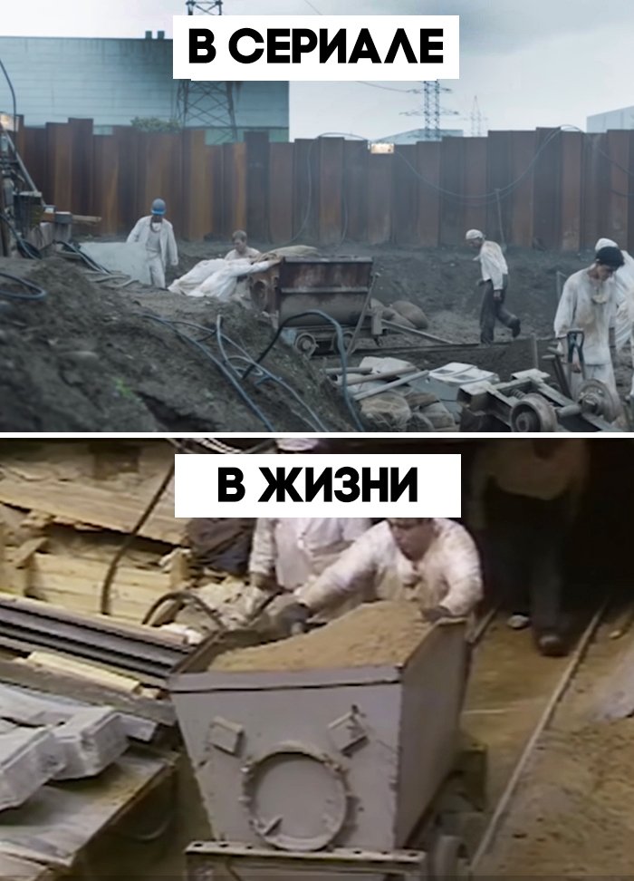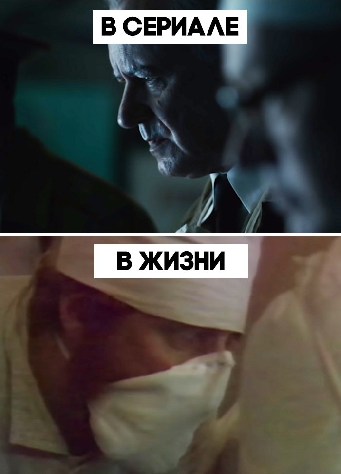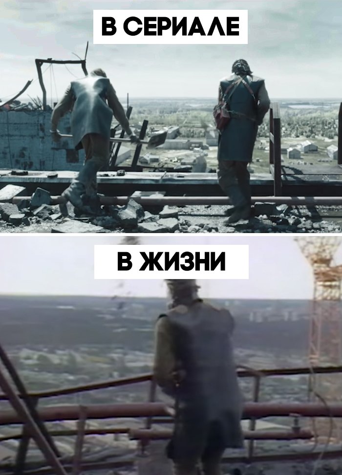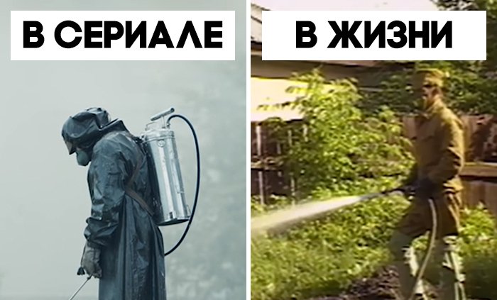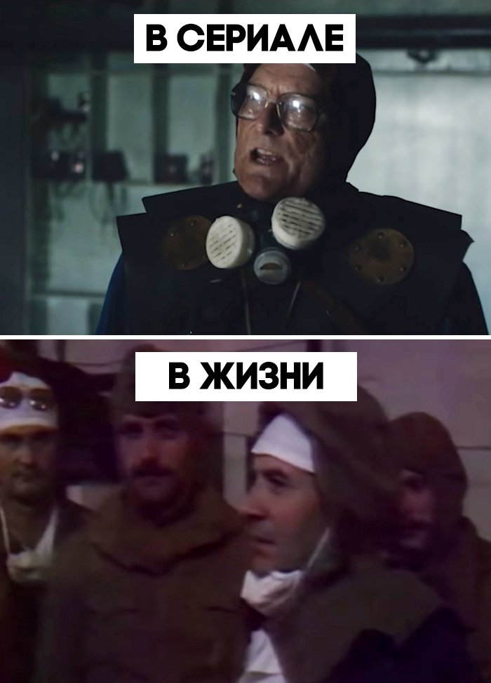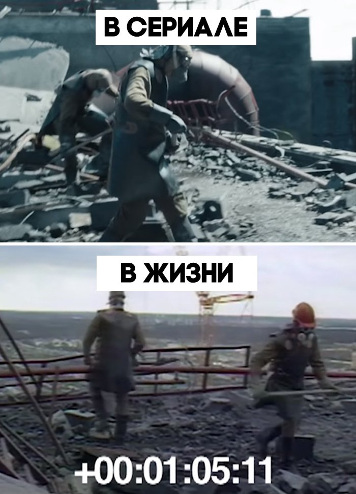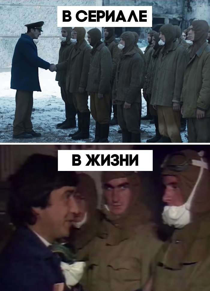 И хотя «Чернобыль» — художественное произведение, снятое по книге писательницы и журналистки Светланы Алексиевич, многие моменты в сериале очень точно копируют реальность. Чтобы убедиться в этом, достаточно сравнить документальные съемки с кадрами из «Чернобыля».
