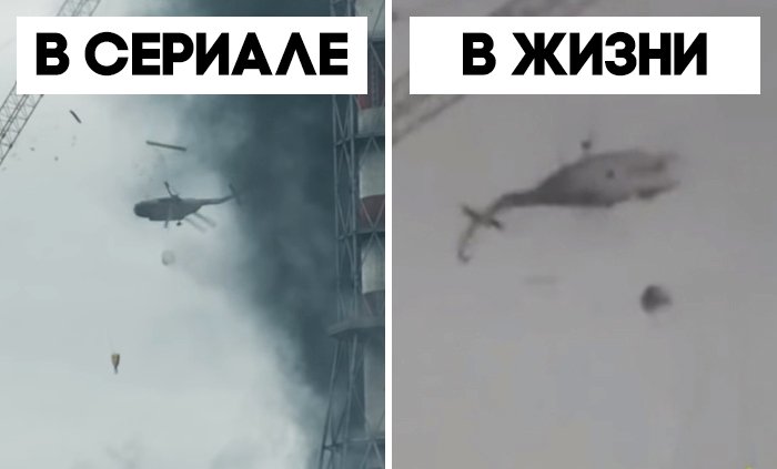 Трагическое крушение вертолета над реактором было и в реальности. Отличие только в том, что в жизни падение произошло в другой день