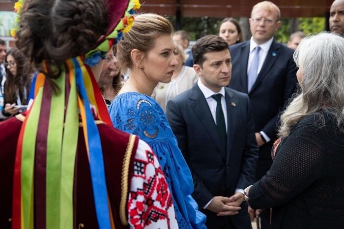 Еще один ляп с обувью произошел в Канаде. Елена Зеленская вышла на публику в красивой синей вышиванке и босоножках. На нее тут же набросились с критикой и замечаниями — открытую обувь на такие мероприятия носить не принято.