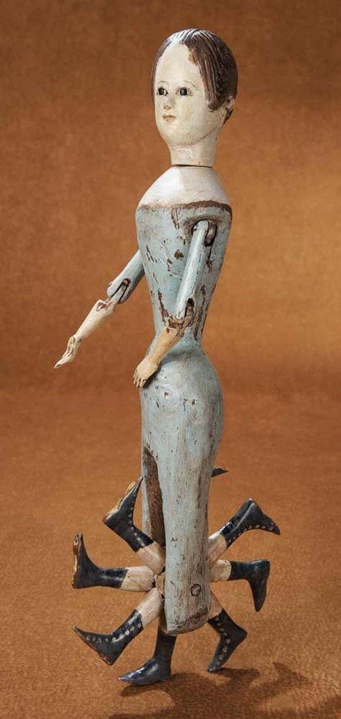 Кошмарная кукла с фотографии ниже была сделана в Российской империи 200 лет тому назад. Когда мастеру поступил заказ соорудить игрушку, способную ходить, он вышел из ситуации весьма оригинальным способом. Вот только изделие его рук получилось похожим на жутковатую помесь паука с мельничным колесом…