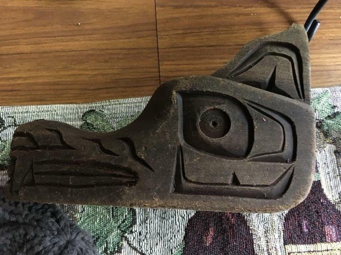 Перед тобой ритуальная маска индейцев в виде волка, напоминающая ботинок великана