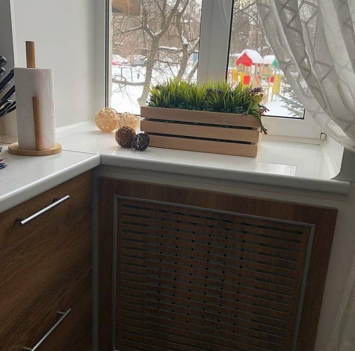 Хозяйка особо довольна симпатичной решеткой, за которой ее изобретательный супруг спрятал несуразный радиатор.