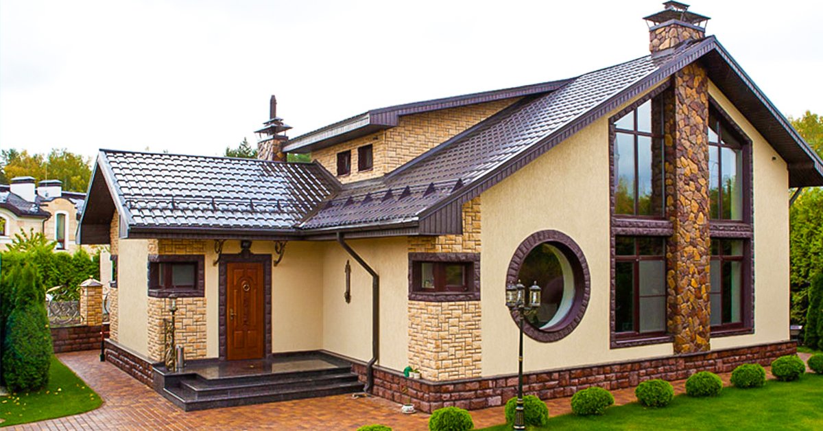 Красивые идеи фасадов частных одноэтажных домов (15 фото)