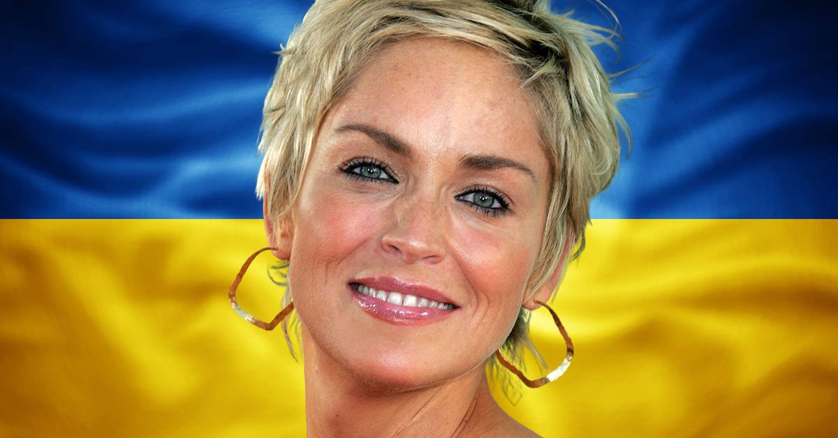 Сине-желтый наряд Шэрон Стоун привлек внимание папарацци на Каннском фестивале