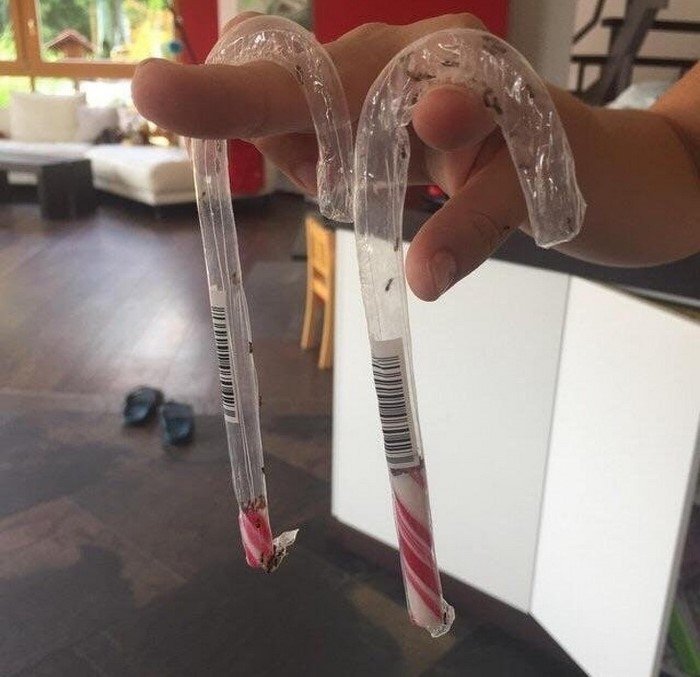 Муравьи — находчивые насекомые. Чтобы добраться до вкусного и сладкого содержимого этих конфет, они аккуратно прогрызли себе проход внутрь.
