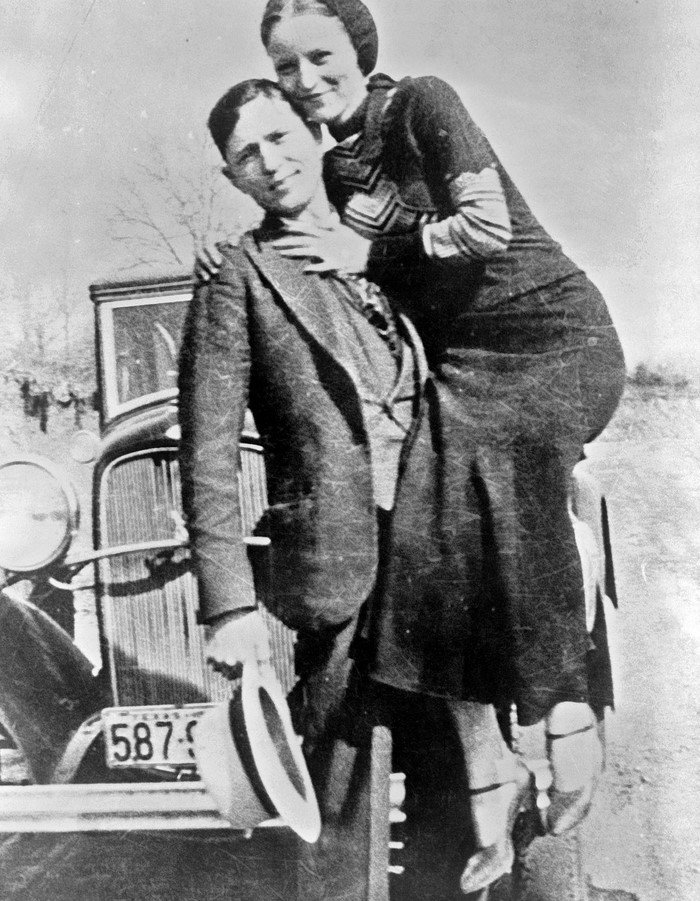 Легендарные Бонни и Клайд промышляли грабежом и разбоем в 30-х годах прошлого века. Банда, в которой верховодила парочка, не церемонилась со стражами порядка, убивая любого, кто вставал у них на пути. В конце концов обозленные полицейские всё-таки устроили засаду и расстреляли знаменитых гангстеров.