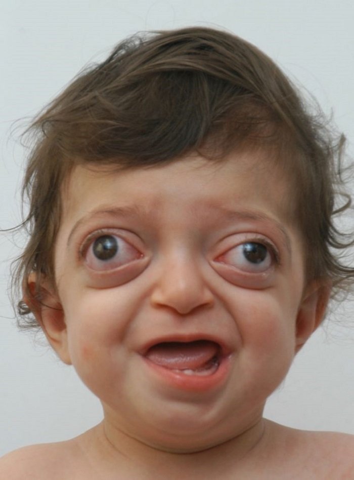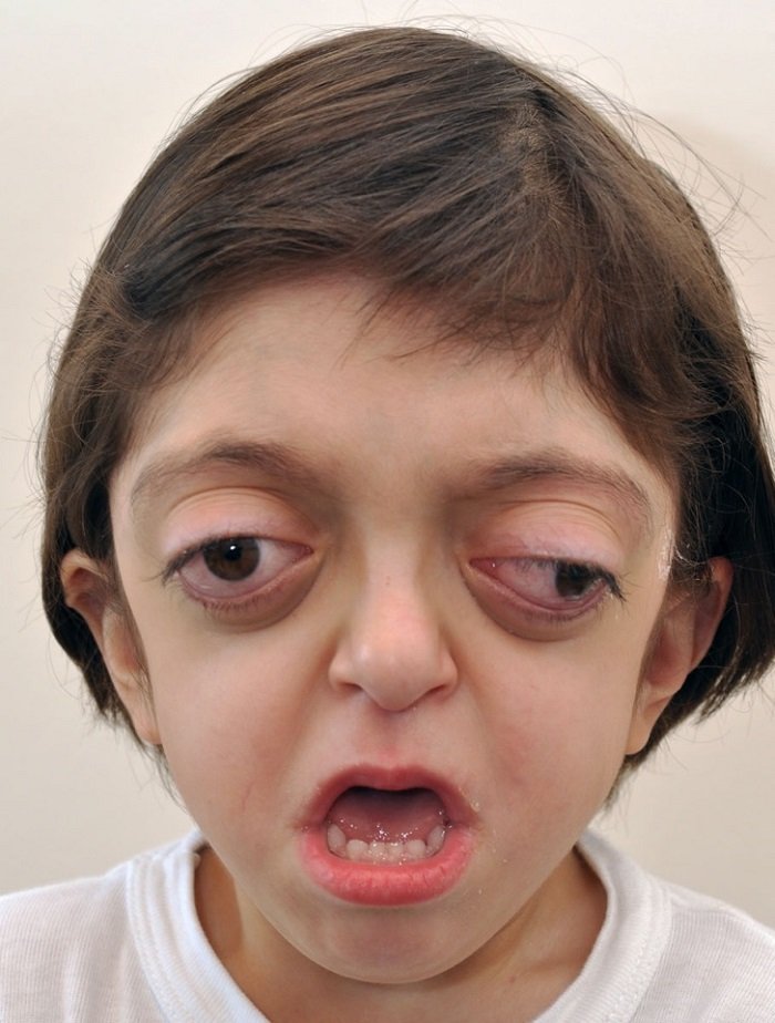 Синдром Крузона — генетическое заболевание, которое приводит к преждевременному сращиванию костей черепа. Из-за болезни у несчастных развивается косоглазие, глухота и слепота, могут быть проблемы с умственным развитием.