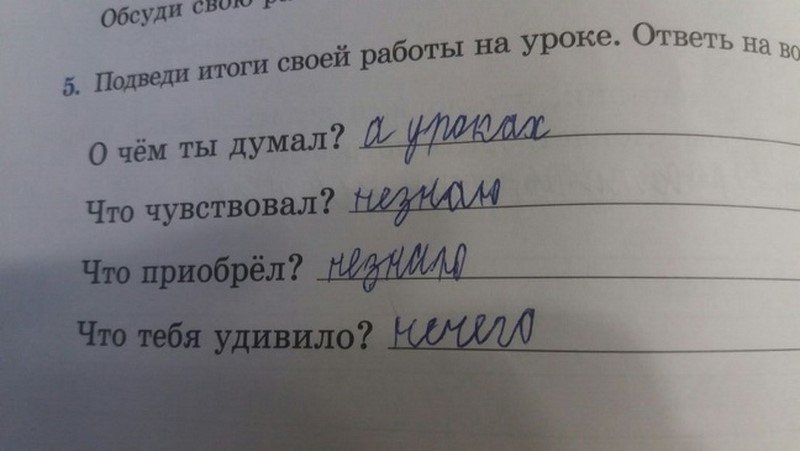 Ну как тебе подборка? Выдавал ли ты в школьные годы что-то подобное? Я вот ничего такого, к сожалению, не могу вспомнить. А тетради мои давным-давно на мусорке. Так что остается довольствоваться чужими шедеврами.