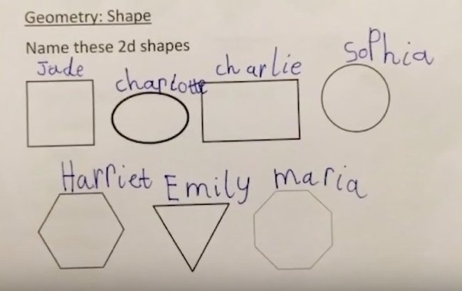 Задание состояло в том, чтобы назвать изображенные фигуры. Но не именами же своих одноклассниц