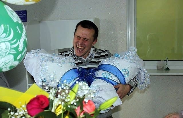 Счастливый отец кричит от радости после того, как наконец-то увидел своих малышей! Не смог сдержать эмоции.