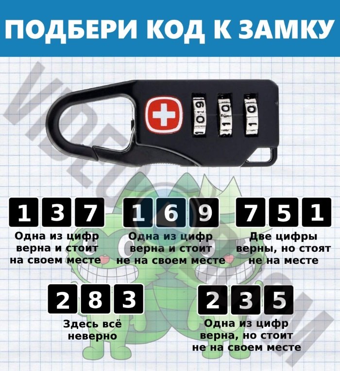 12. В детстве мы играли в подобную игру, которая называлась «Быки и коровы». Попробуй и ты свои силы!
