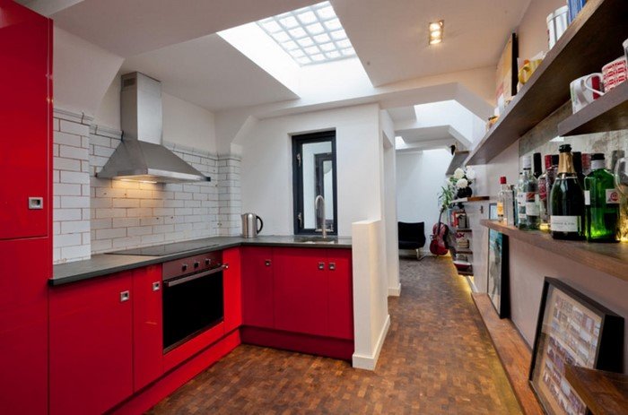 Просторная кухня оборудована по последнему слову техники и обставлена с немалым вкусом. А ведь раньше на этих стенах висели писсуары…
