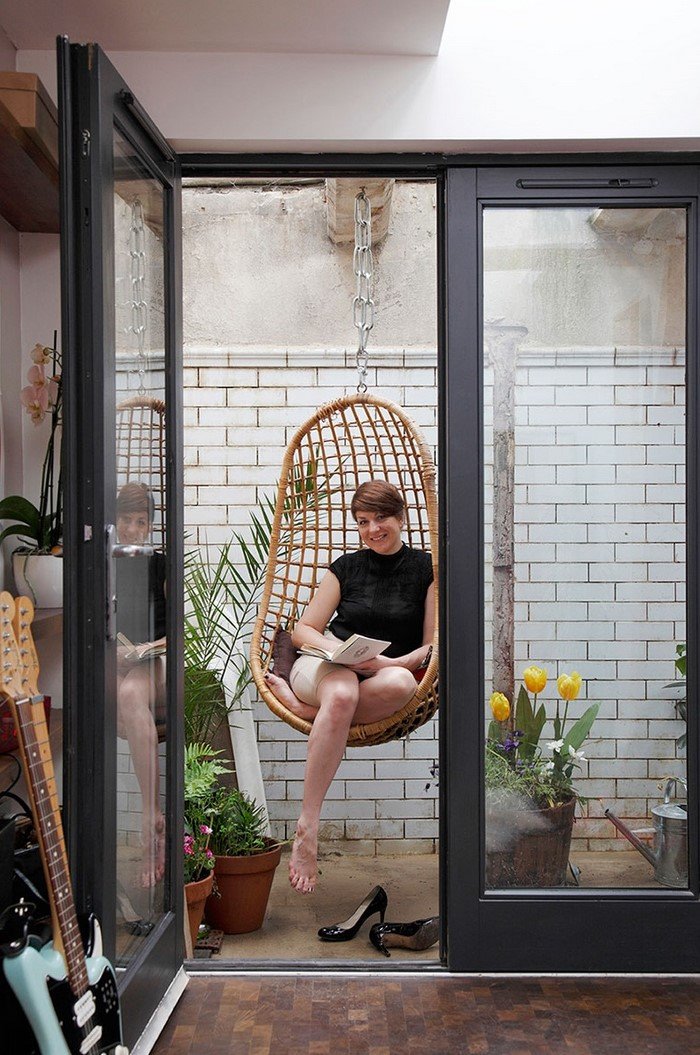 Есть тут даже небольшое подобие садика, где архитектор подвесила на манер качелей плетеное кресло. Теперь она в любой момент может расслабиться в окружении цветов, забыв о том, что вокруг шумит многолюдный Лондон!