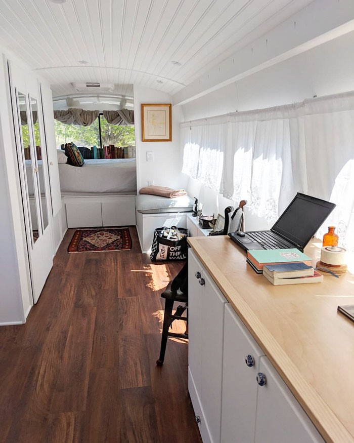 Джесси уверена — без картин, подушек, ковриков и прочих атрибутов жилища в доме-автобусе будет слишком пусто. Буквально нескольких деталей хватает, чтобы транспортное средство стало сосредоточием уюта и комфорта.