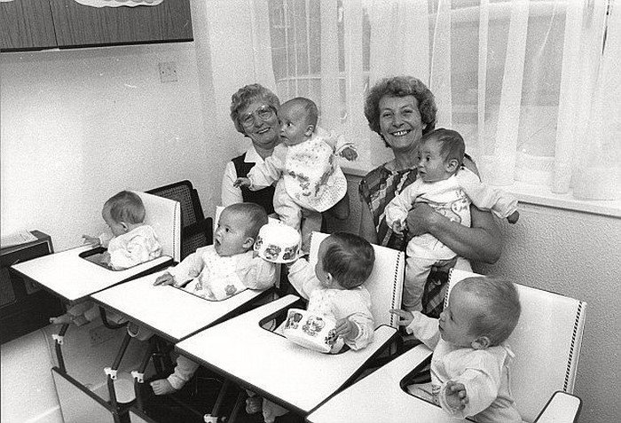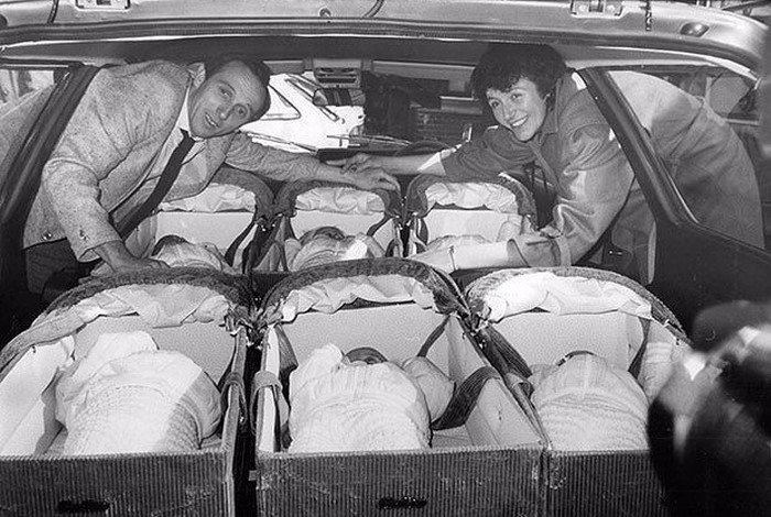 Гуляя, каждый из супругов катил по коляске для близнецов, а еще одну малышку нес на руках. Но если в дом заявлялся гость, Джанет с мужем просто вручали ему третью коляску и шли на прогулку все вместе!