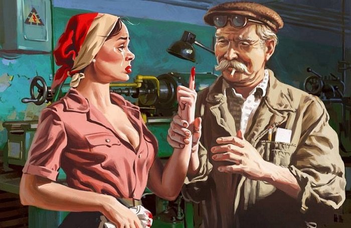 Тут советские женщины выглядят как супермодели. Любители СССР ликуют, однако они совершенно оторваны от реальности, поскольку Барыкин своим творчеством смеется над советским бытом. Его стиль — это копирование американского пинапа. Актрисы Голливуда и правда выглядели так лет 50 назад, однако это не имеет никакого отношения к советской реальности.