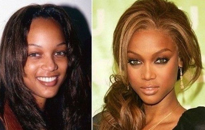 В молодости Тайра смотрела на всех с широко открытыми глазами, сейчас взгляд 44-летней модели несколько прищурен. Женщина призналась, что прибегала к пластике вначале карьеры, так как считала свою внешность непривлекательной и неподходящей для модельного бизнеса.