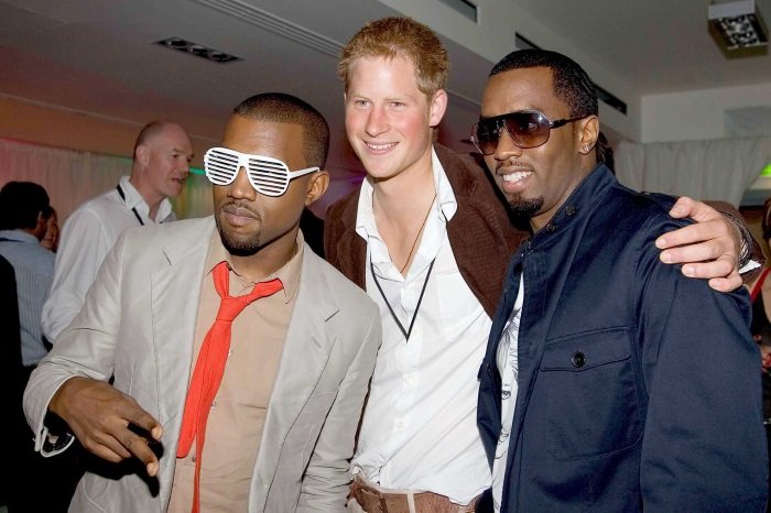 Гарри вместе с рэперами Шоном Комбсом (P. Diddy) и Канье Вестом на вечеринке после концерта в 2007 году.