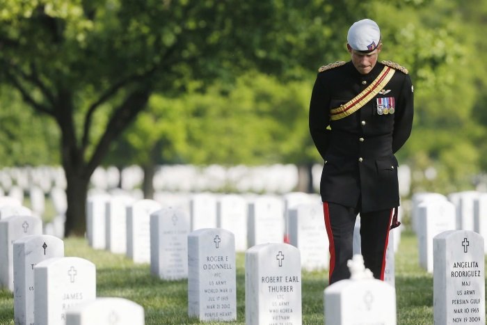 Принц Гарри в парадной форме посетил Арлингтонское кладбище в США.