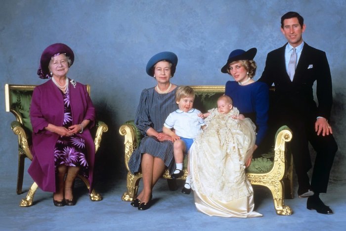 3-месячный Гарри вместе со старшим братом, родителями, бабушкой и прабабушкой.