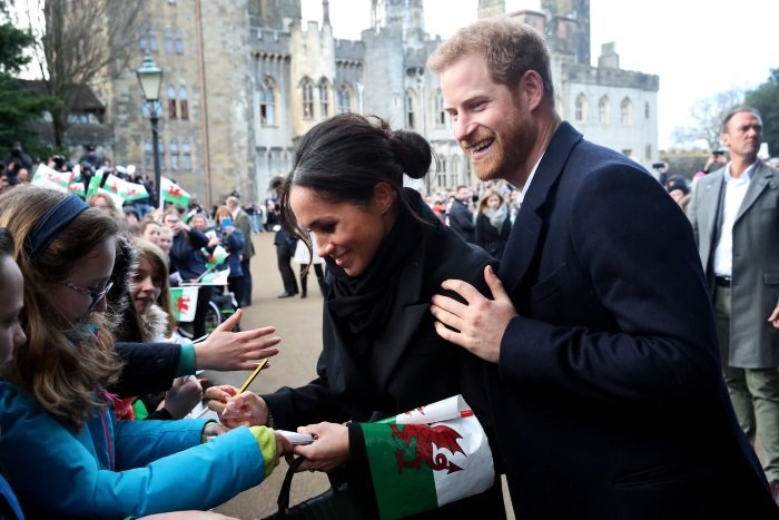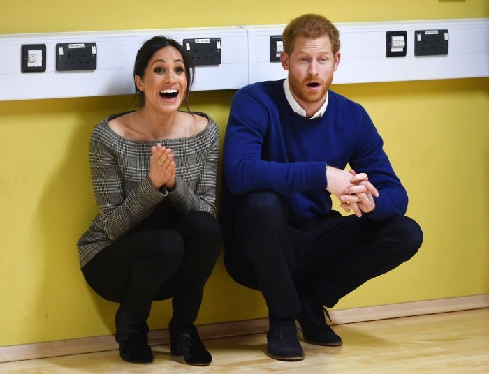 Гарри со своей невестой Меган Маркл следят за репетицией танцевального кружка в одной из школ Кардиффа.