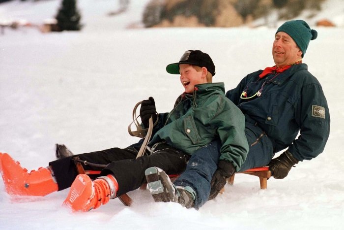 Гарри с отцом на швейцарском горнолыжном курорте Клостерс.