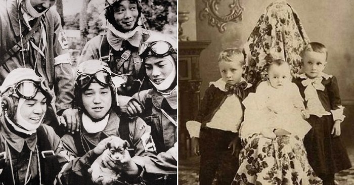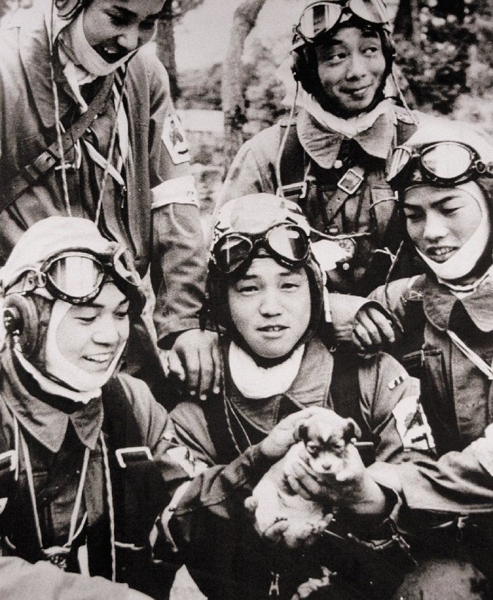 На первый взгляд это обычный снимок курсантов летной школы. Только вот школа эта была особенная. Японских подростков готовили в качестве камикадзе. Спустя пару дней после позирования для этого фото 17-летний Юкио Араки (держит щенка) и его товарищи отправятся в свой последний полет.