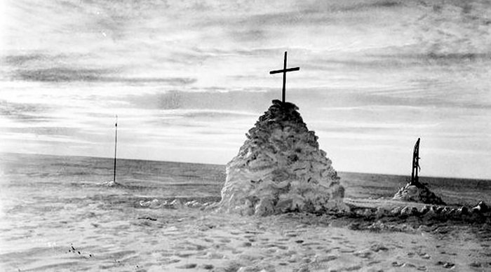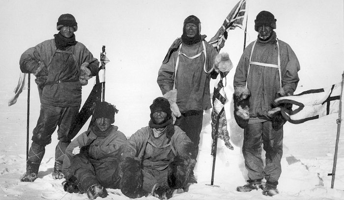 На этом фото 1912 года изображена британская экспедиция на Южный полюс. Команда Роберта Скотта пыталась опередить своих оппонентов с Норвегии, возглавляемых Раулем Амундсеном. Мало того, что британцы оказались вторыми, так они еще и погибли от подхваченной цинги.