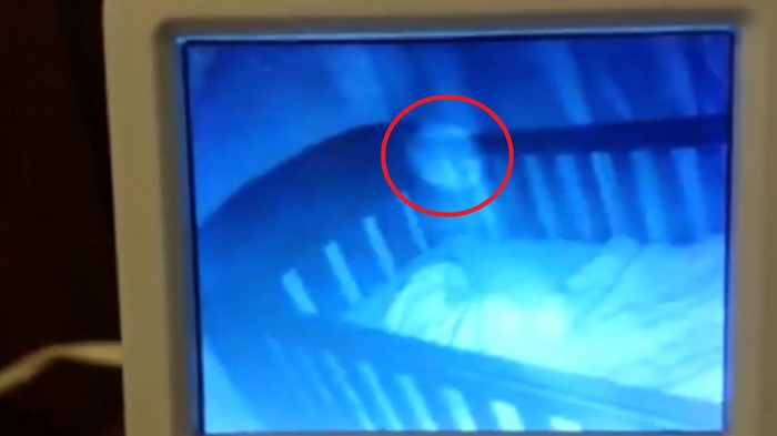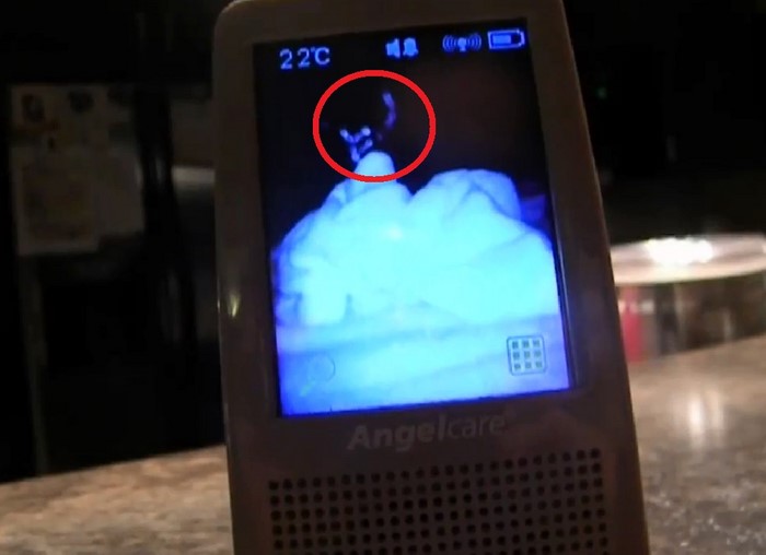 А здесь уже про помехи говорить сложно. Заметив рядом с сыном загадочный предмет, отдаленно напоминающий череп, мать сразу же бросилась в детскую. Но когда она прибежала, ребенок спокойно спал, а череп сразу же исчез из кадра.
