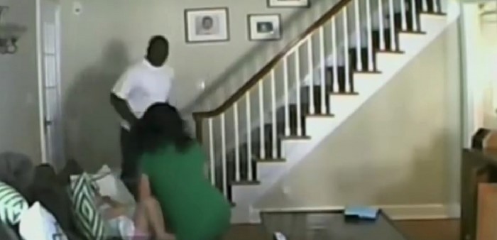 А вот в случае со снимком выше ребенку угрожала вполне реальная опасность. Ужаснувшиеся отец с матерью наблюдали, как забравшийся в дом грабитель пять минут пристально разглядывал спящего малыша. Похоже, вид безмятежно сопящего в кроватке младенца разбудил в преступнике совесть. Вор тихо удалился, практически ничего не взяв.