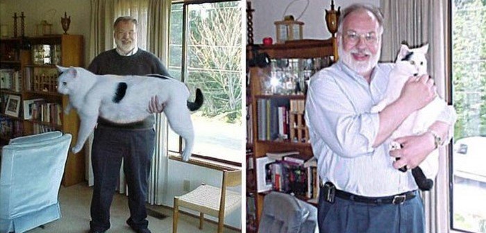 Снимок кота по кличке Снежок начал распространяться по Сети в 2003 году. Ходили слухи, что усатый гигант весит больше 40 килограммов, а всё из-за радиации, которой облучили его мать. На самом деле, как видишь, Снежок вполне обычный кот. А создал сенсацию, сам того не подозревая, хозяин котофея, который лично отредактировал снимок шутки ради и отправил его друзьям.